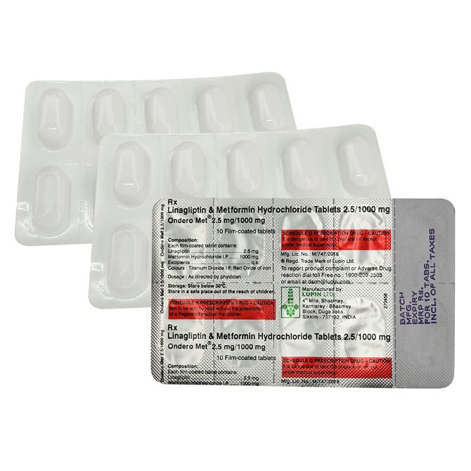 Линаглиптин метформин (Джентадуэто генерик) 1000мг/2.5мг :: Ondero Met таб. №30 (3 блистера по 10 таб)